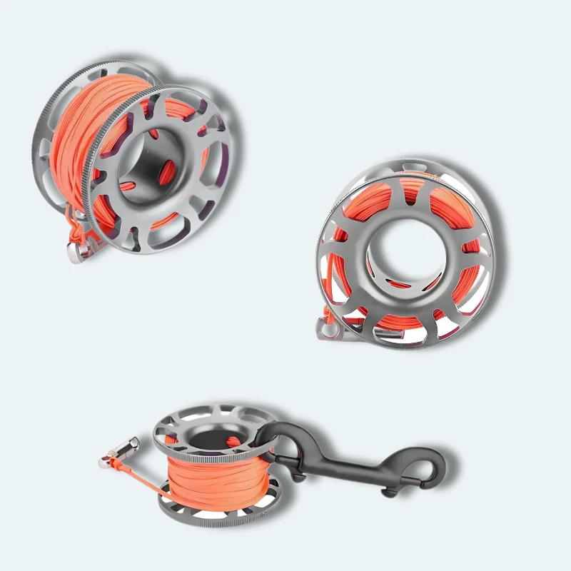 Grâce à leur construction solide et ergonomique, ces bobines assurent un déroulement fluide et un enroulement rapide même avec des gants de plongée.