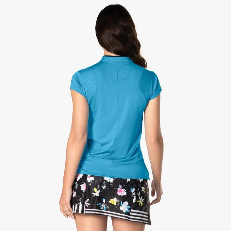 Le haut For The Win Short Sleeve de Lucky in Love pour femme, issu de la collection Tropical Sublime, offre un look moderne et épuré. Doté d’un col montant, de panneaux en jersey mesh pour une respirabilité accrue et de détails contrastants soulignés par un passepoil, ce haut se démarque dans un vibrant bleu perroquet.
