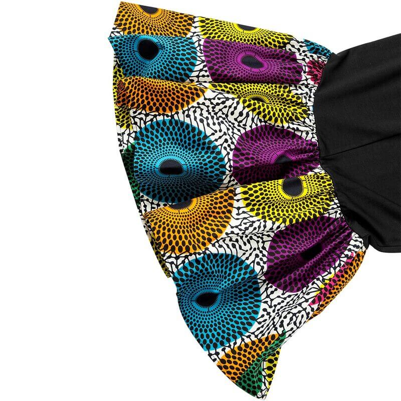 Pour un mariage ou une grande fête, optez pour un look majestueux grâce à cette jupe sirène wax à motif de disque. S’ajustant parfaitement à votre silhouette et très sexy, cette robe fera sensation. Complétez avec des talons pour un style encore plus élaboré.