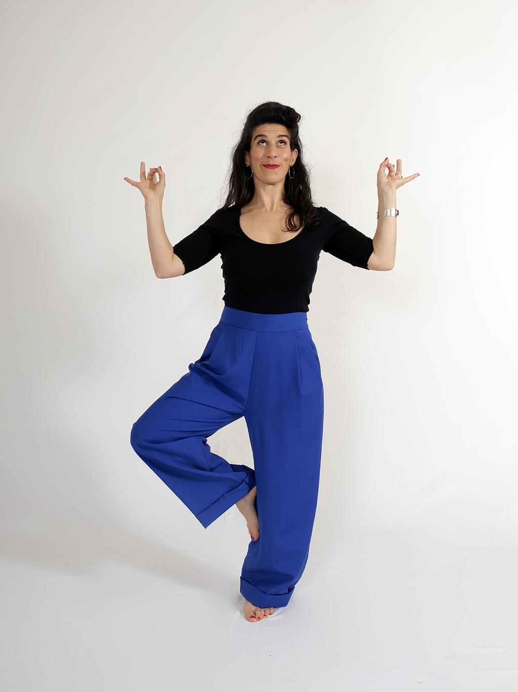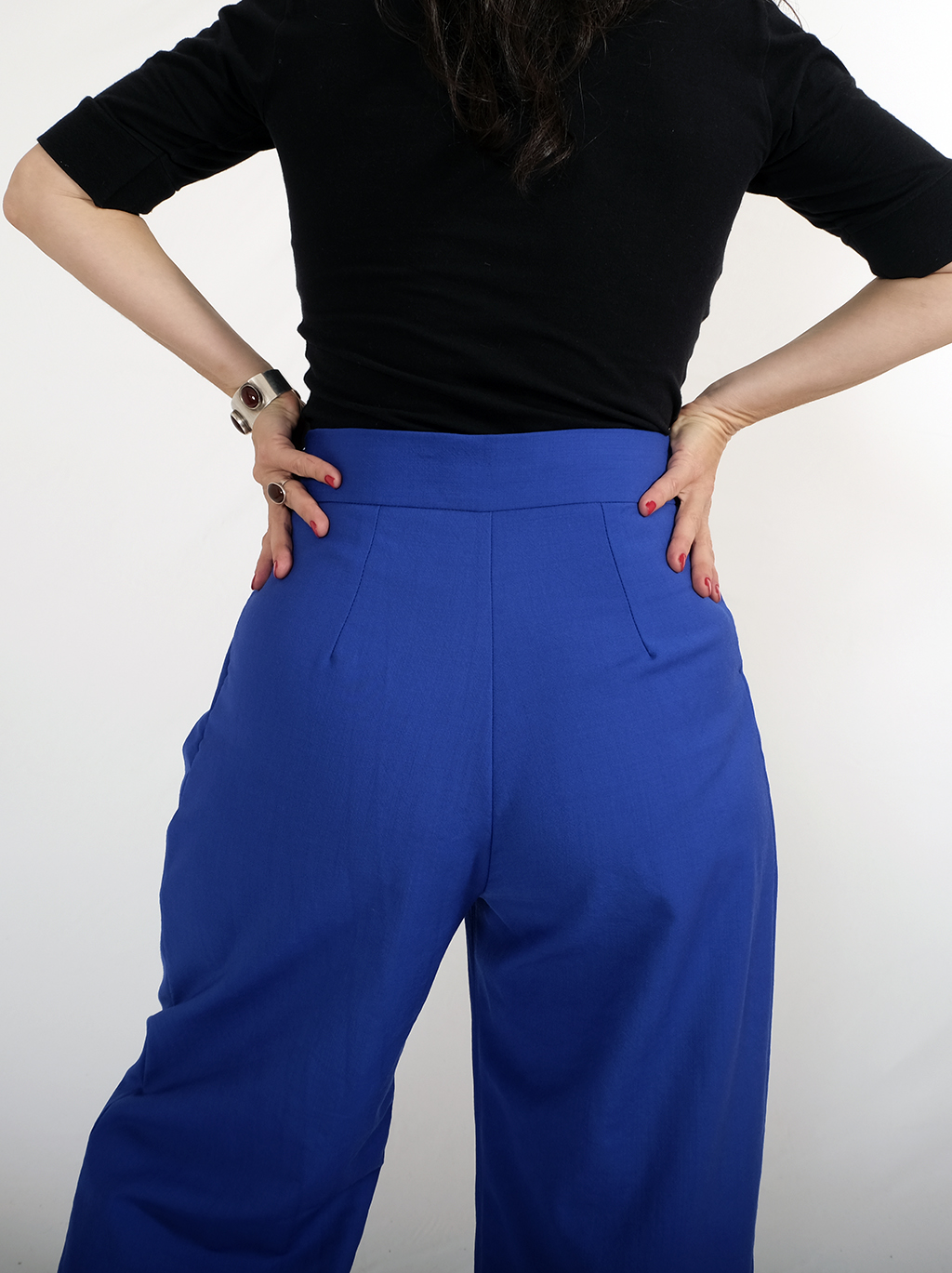 LUNE : Pantalon taille haute 100% laine bleu Klein