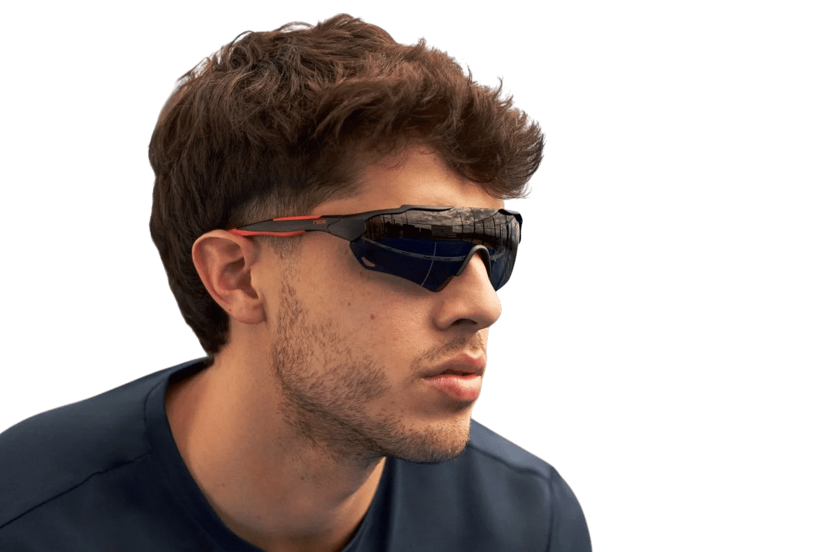 Ses verres polarisés de haute qualité, de teinte grise, garantissent une vision claire et sans reflets, idéale aussi bien sur le court qu’en dehors. De plus, les branches avec revêtement en caoutchouc assurent un ajustement confortable et sécurisé à tout moment.