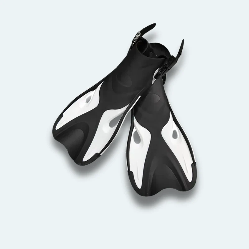 Équipées de sangles ajustables à boucles rapides, ces palmes s’adaptent facilement à différentes tailles de pieds, pour un ajustement précis et sécurisé.