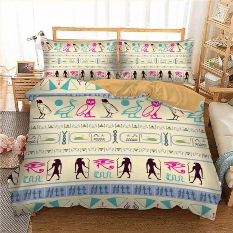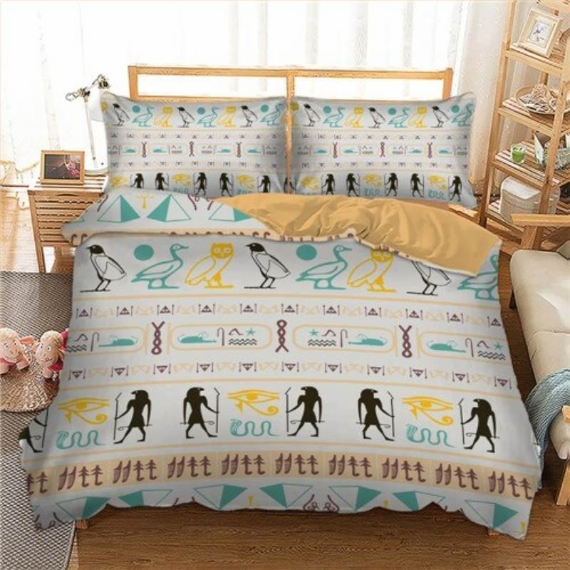 Vivez la culture égyptienne avec notre housse de couette ornée de figure de l’Egypte antique et du symbole de l’œil d’Horus.