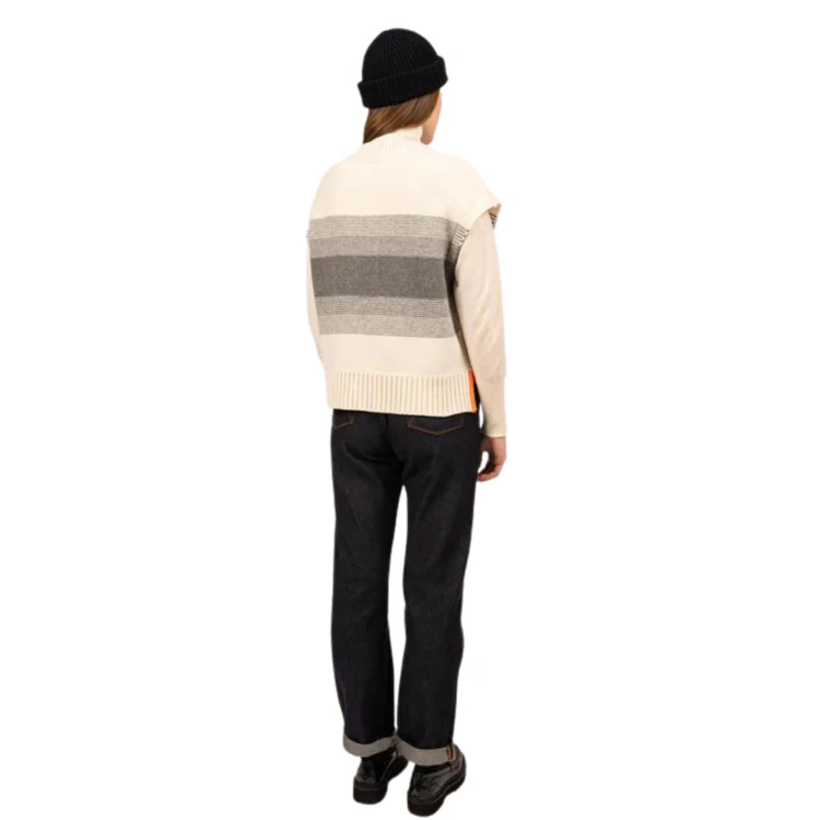 On succombe sans hésiter à cette veste sans manche en laine . Portez la avec le chandail Celina orange en dessous et vous ferez à coup sûr tourner les têtes ( à défaut vous serez confortable et bien au chaud!)