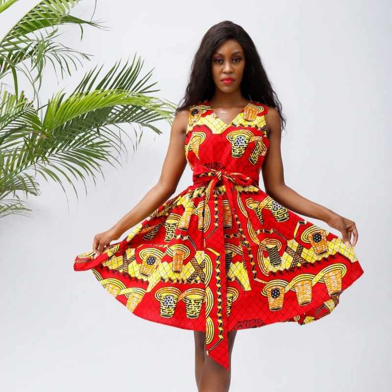 Sublimez votre entourage avec cette Robe africaine Moderne pour une occasion spéciale. Vous souhaitez être à la mode à votre mariage, à un baptême ou à une soirée ? Cette robe à motif Wax est faite pour vous. Avec son cordon d’attache, elle mettra en valeur votre taille. Sa matière en coton doux vous apportera une sensation de confort. Complétez votre look avec un sac à main en Wax, des bijoux africains et des escarpins pour un style parfait.