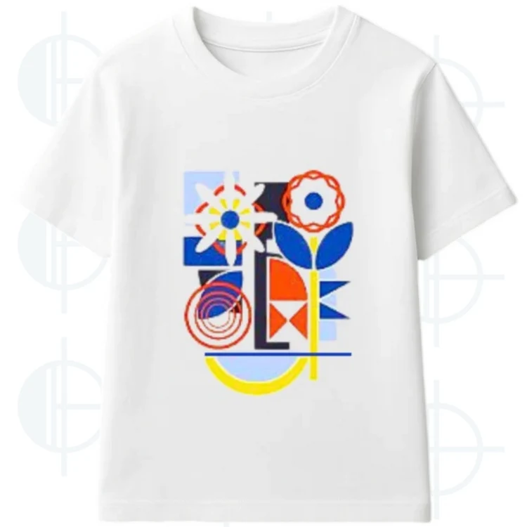 Motifs graphiques floraux en techniques mixtes (impression à l’eau, caoutchouc, métallisée)