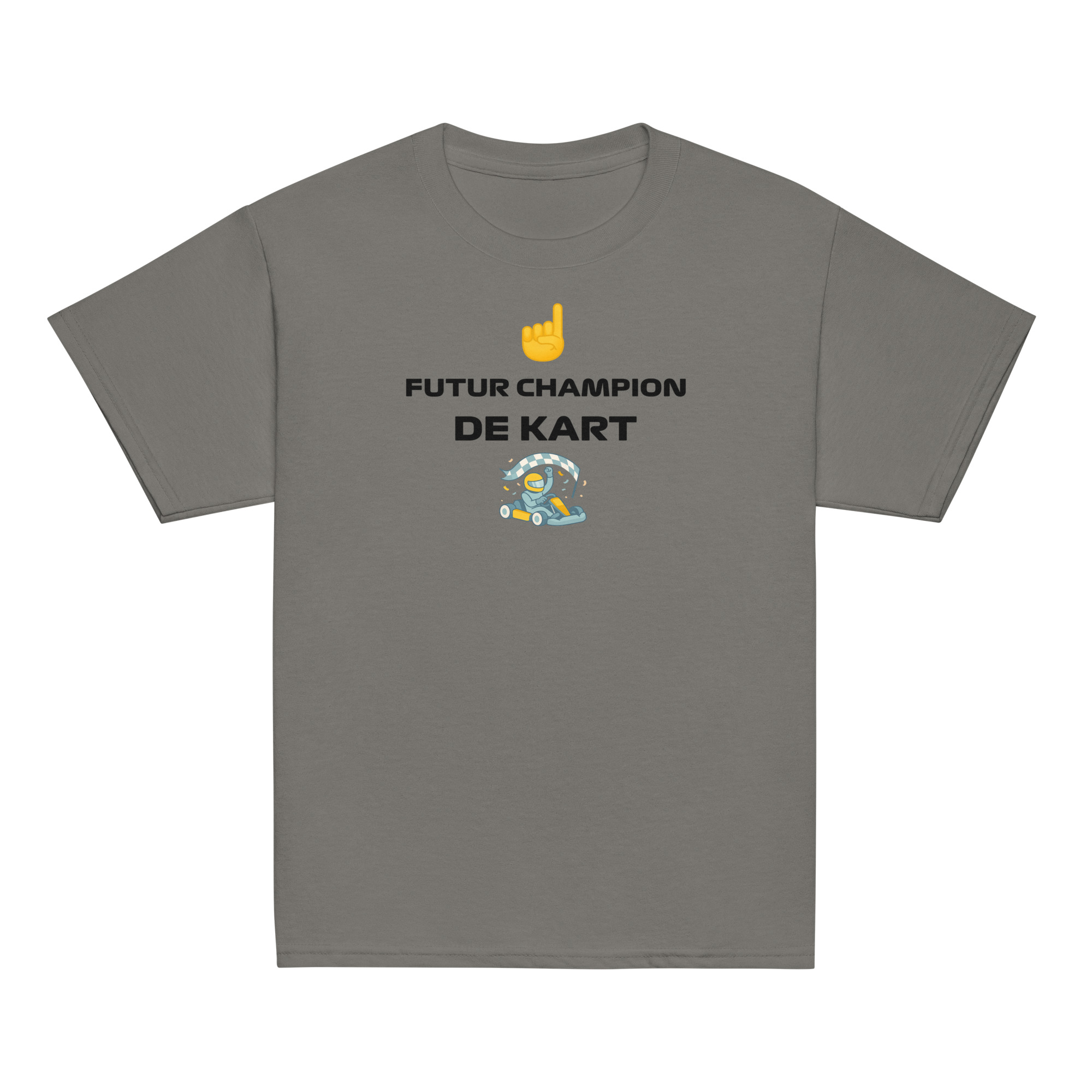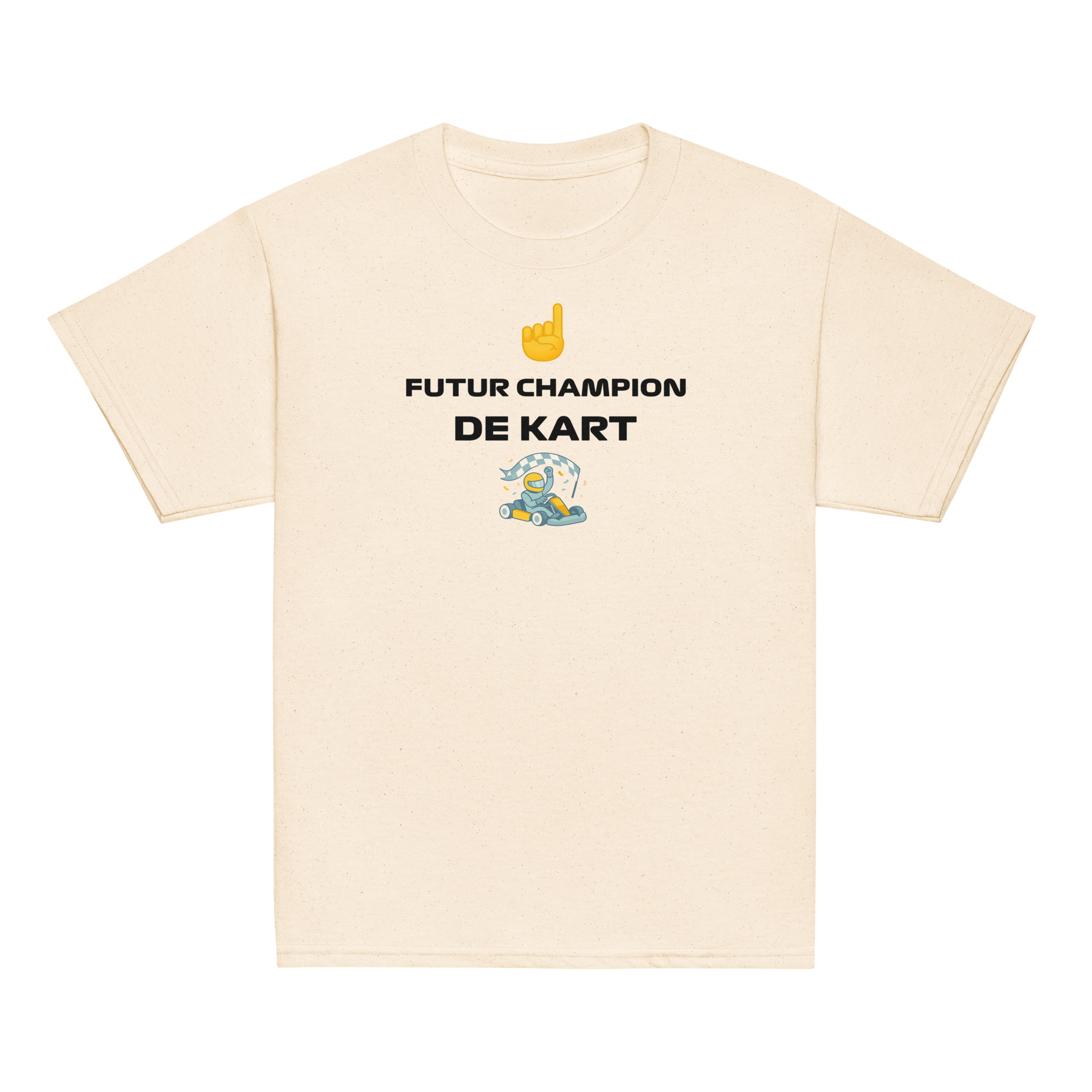 👉 Avec ce t-shirt “Future Champion de Kart” et son logo emblématique, vos enfants allient confort, style et passion. Un indispensable pour les futurs pilotes.
