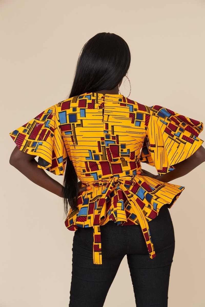 Apparaissez dans un style totalement africain et affirmez votre culture avec ce t-shirt pagne femme. Fabriqué avec un tissu très doux et léger, ce vêtement est parfait à porter par temps chaud durant la saison estivale. Vous rayonnerez de mille feux avec sa couleur jaune éclatante et ses motifs africains. Bénéficiez d’un cordon de serrage à l’arrière pour marquer votre taille.