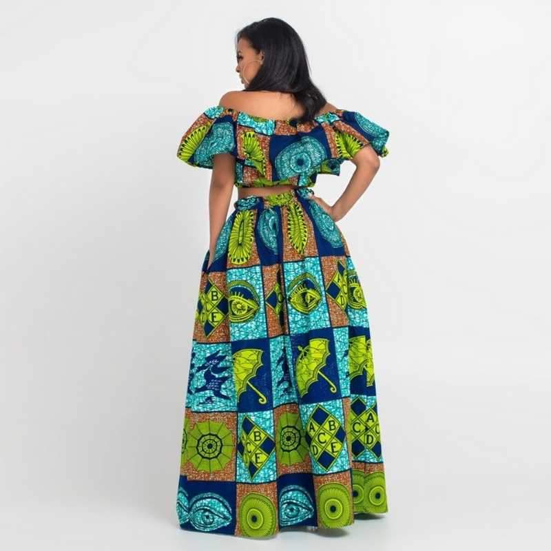Rehaussez vos tenues avec un magnifique Haut Wax et une Jupe Longue africaine de couleur verte. Son tissu doux vous offrira une sensation de confort inégalée. Complétez votre look avec des accessoires africains pour les grandes occasions. Notre Tenue africaine traditionnelle pour femme est incroyable.